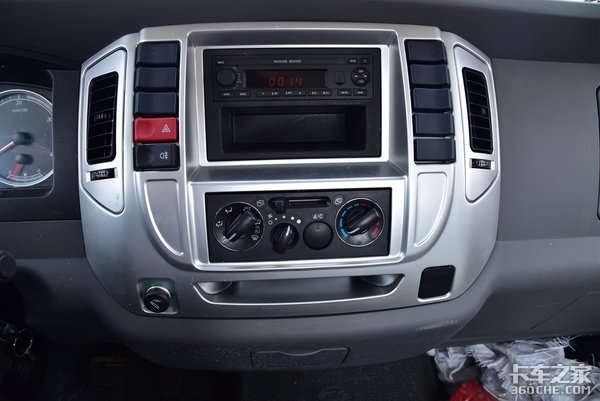 中控区域两侧分别设置了5个按键区,方便后期卡友们根据需要进行加装。多媒体机头、空调控制面板以及点烟器口和储物盒等都有配备,能满足日常中的基本使用需求。
