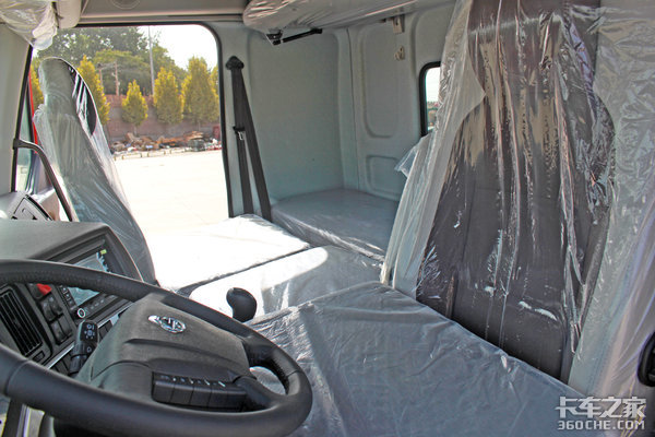 既然是定位于长途高效物流运输,那么自然续航能力不会差。实拍车搭载了目测400升的铝合金油箱,按照该级别车型常见油耗水准计算,这款油箱能够为实拍车提供近2000公里的续航里程,从北京到广州单程不用进出加油站,运营效率高效提升。