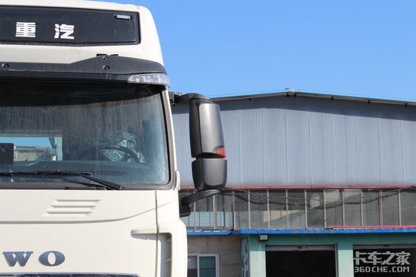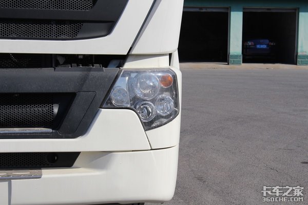 这款重汽HOWO T7H整车采用了珍珠白的喷涂,看起来非常的上档次,在充斥着红蓝配色的牵引车市场中,这个配色可以说是非常的清新。外观方面,它依旧延续了家族化的设计理念,辨识度很高。实拍车装配有印有“中国重汽”字样的原厂导流罩以及导风槽,高速行进时可以充分的降低风阻,提高燃油利用率,从细节上帮卡友省一笔钱。