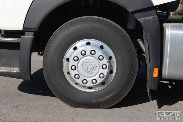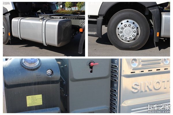 这款车的油箱采用铝合金壳体,容量为600L,轮胎选择的是铝合金轮辋的成山真空胎,轮胎规格为12R22.5。这款车的电瓶、尿素箱的布局非常的紧凑,在设计方面非常的用心。