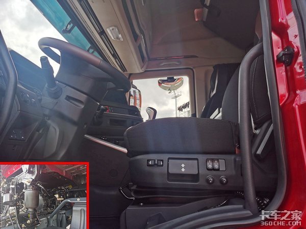 驾驶员座椅配置气囊减震座椅,带有腰托、背托、仰角调节及通风加热等功能调节。并且配置座椅扶手,能够更好减轻长途驾驶的疲劳程度。而且上汽红岩第六代重卡是采用国际领先的悬浮隔振、四点会聚式悬置,能够极大程度上提升司机驾驶的舒适性。