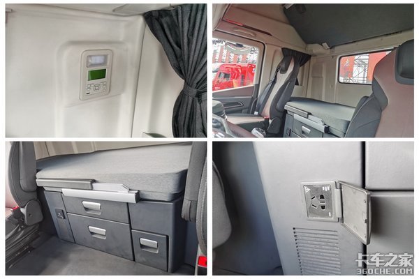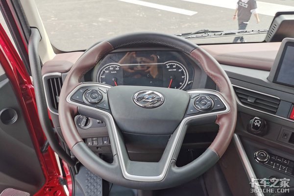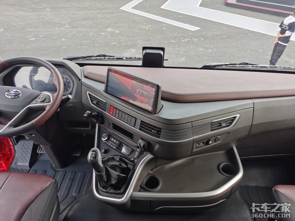 实拍的这款红岩杰狮H6驾驶室也进行了升级换代,驾驶室采用高顶准平地板标长驾驶室,其内部高度为2.5m,整个驾驶室空间很大,待在里面不会有压抑的感觉。整体设计十分精致,多处有棕色的设计,双色的碰撞设计看上去很有质感。