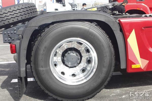 轮胎是装配了295/80R22.5型号的双钱牌真空胎,全车标配铝合金轮圈,可以很好的降低该车的自重。
