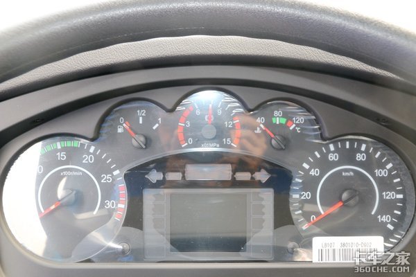 仪表盘造型整体看上去像是一只熊掌,设计上比较讨巧。转速与速度表设计地较大,配色清晰易读。上方三个则是显示油量、气罐气压、水温信息的指针。除此之外,行车电脑显示屏主要展示车辆状态等信息。