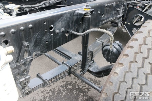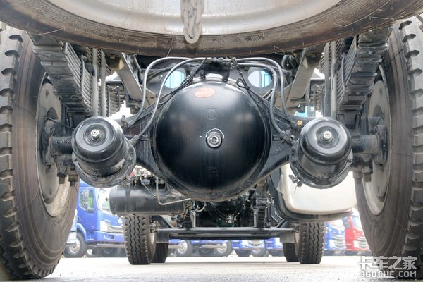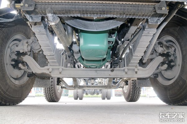 悬架方面,该车采用前12中12后10+9的多片簧配置,后桥允许载荷为11500kg,具有较强的承载能力。