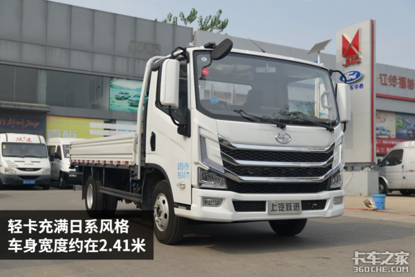 第一眼看到跃进H500,线条粗犷有力,前挡风玻璃的面积非常大,这种设计可以让驾驶员有一个良好的视线范围,回旋镖造型的日间行车灯和镀铬的中网饰条融为一体,观赏性非常好。使用的是LED光源,灯带的使用寿命以及能耗都比较理想。