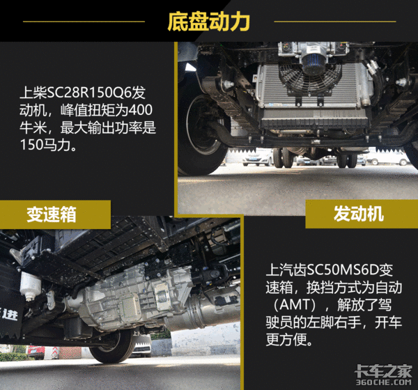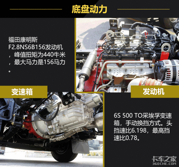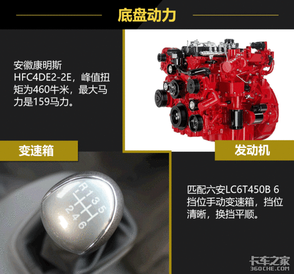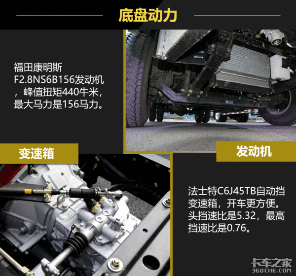 实拍车辆使用的发动机,加速度比较快,对车辆的控制性比较好。在底盘上也使用的是多片簧设计,对车辆的承载力有一个把控。而且整车在节油和核心零部件保养这两个方面都进行了升级与优化,保养周期较长,对车辆的出勤率有一个良好的保证。
