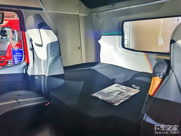 通过向后延伸的驾驶室布局其实可以猜到卧铺加宽了,该车采用970mm的超宽卧铺设计,可以达到两人平躺、四人围坐的程度,真正意义上的“夫妻车”,减少了爬到上铺的繁琐。并且床垫填充物较厚,能给休息人员带来非常充足的支撑性和舒适性体验。