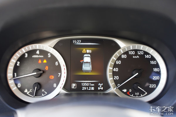 仪表造型采用黑底+银边+白字白针的设计,中间区域的彩色液晶屏可以显示车辆的各种信息,并且增加了胎压监测,降低车辆行驶过程当中因为欠压出现的爆胎风险。