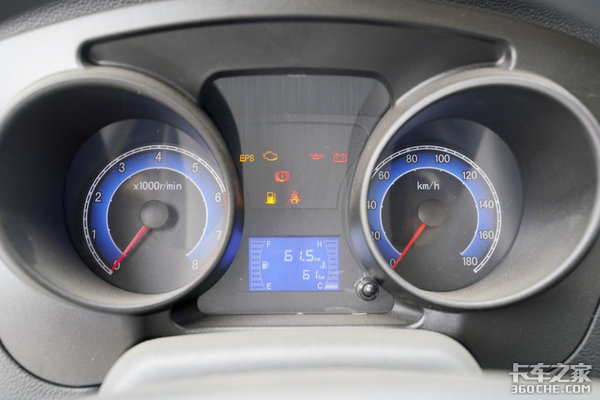 蓝底双色仪表盘,炮筒式的造型为车辆内饰加分不少。中间配备有一个小尺寸液晶屏,可提供车辆油耗、里程、水温、保养等基本信息,便于驾驶员随时掌握数据。