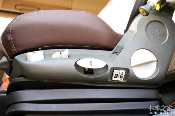 座椅作为与咱们驾驶舒适性最为密切的配置,也同样是马虎不得的,这台JH6 8×4短轴领航版自卸车使用了一款德国大牌格拉默的标准版气囊座椅,除了支持前后调节等基础功能,它还带有阻尼软硬调节,经过工地等颠簸较大路段时能够更好保护咱们的腰椎以及脊椎。