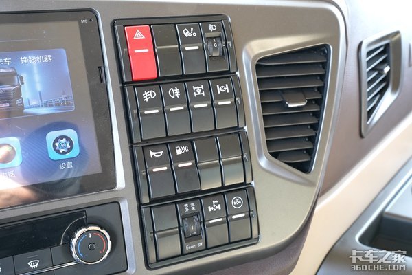 空调部分是这台JH6 8×4短轴领航版自卸车内饰的一个重点,这款空调是一款美标提供的自动空调系统,这款空调整体工作效率提到升级,夏天车内更凉快,冬天也不用挨冻。