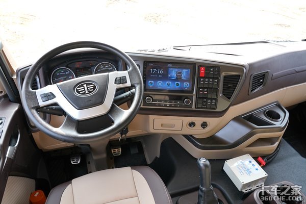 中控配色方面,这台JH6 8×4短轴领航版自卸车使用了全新的撞色设计,咖啡色配合上米色让整个驾驶室显得更加温馨,长时间在车内驾驶也不会出现视觉疲劳,并且这款中控在一些容易脏的地方都使用了深色,减少了打扫车内的次数。