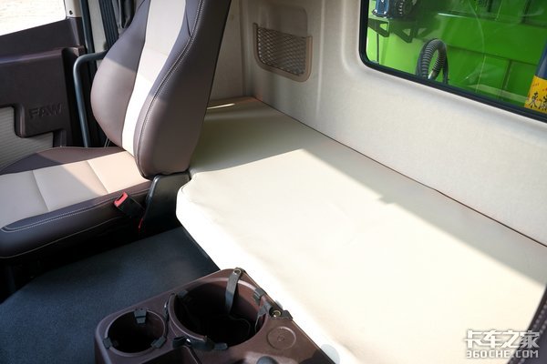 因为这款JH6 8×4短轴领航版自卸车的驾驶室是基于卓越版牵引车演变而来,卧铺空间的优良传统还是得到了保留,虽然自卸车在卧铺的使用频率上不高,但空间够大放一些东西也是不错的。