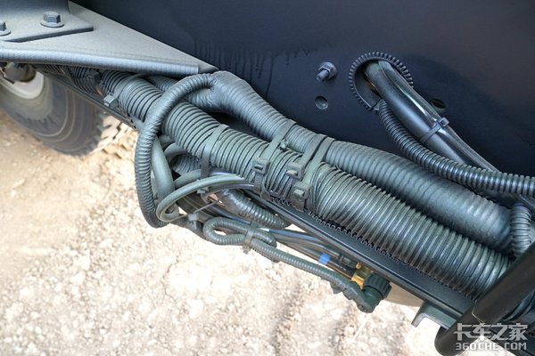 整车的线束以及接头也都采用了多重包裹以及防水插头,再配合上波纹管保护整个底盘的密封防水性能可以说更上一层楼,长期工地使用可靠性更高。