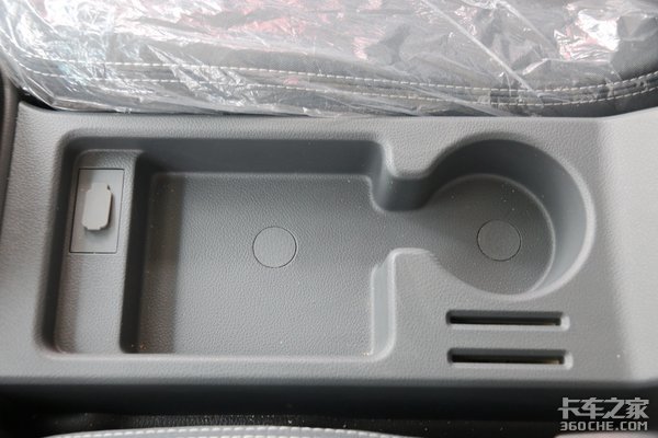 在换挡杆附近,有一个敞口式的储物盒,可以放文件资料或者饭盒、水杯等,另外还非常贴心的配有卡槽设计,可以放类似于停车卡等卡片,避免丢失,随用随取,非常方便。此处也配有一个USB充电口,和中控台的USB充电口相呼应,主、副驾可以同时为手机充电。