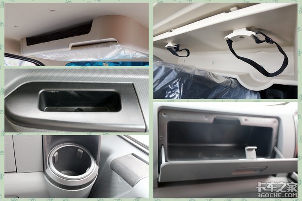 宽体单排驾驶室,但是因为城配运输条件的特殊性,德龙K3000在驾驶室顶部、副驾驶控台处以及座椅后边,都配有储物盒,可以存放文件资料等,甚至于在车上放置热水壶也不是一个问题。