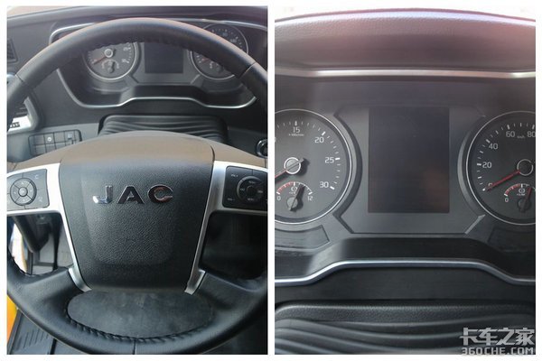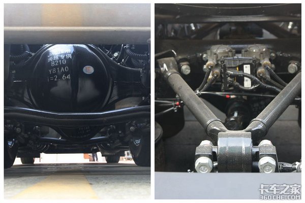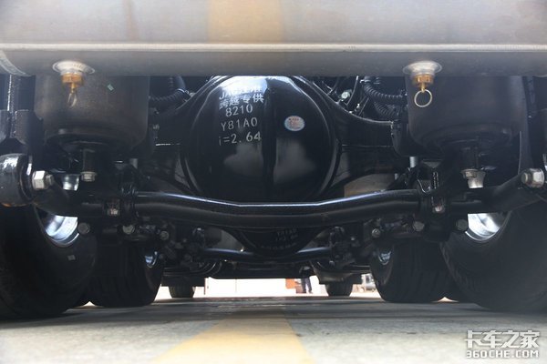 这款车的前桥采用锻钢件,工字型断面,采用盘式制动器,后桥采用13T单级减速后桥,实拍车的后桥速比为2.64,同时还可选2.85。这种大马力+小速比中后桥的组合有着时速快并且非常省油的特点。行业最高的传东西配置其可靠性也是毋庸置疑的。同时整车可实现10万公里长保养,帮助卡友省心省钱。