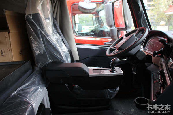 换挡区域集成于主驾座椅扶手上,电子手柄与其他功能按键集成在座椅扶手上,节省了驾驶室内部空间,便于驾驶员寻找适合自己的驾车姿势。同时还可以90度折叠,这一设计有助于驾驶员从主驾驶位置向中间位置移动过程中,再也不会产生更多的局促感。