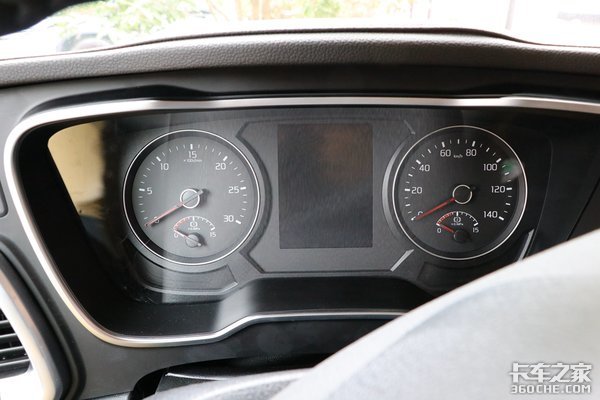 双筒式仪表盘在设计上比较中规中矩,左边是转速表,右边是时速表,中间镶嵌由一块可实时监测车辆信息的液晶显示屏。