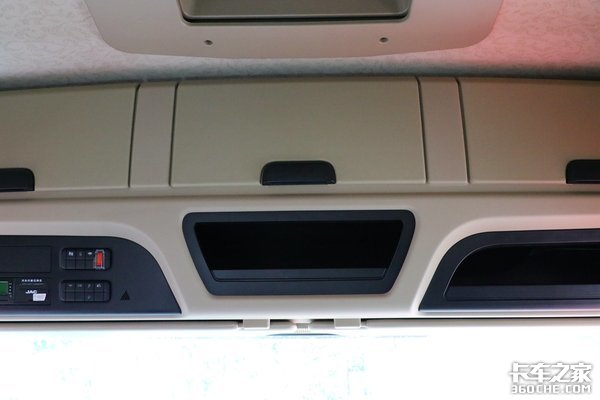 驾驶员头顶上方还有三个超大的封闭式储物柜,可满足卡友们的日常行车需求。