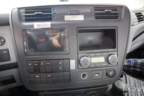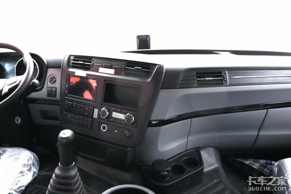 中控台拥有一个7寸的电容屏,集娱乐、语音交互、手机互联、导航于一体,同时内含驾驶员评价系统,可以协助驾驶员保持良好的驾驶习惯,使车辆的油耗达到最佳的水平。油箱加热开关、车道偏离预警系统、轴间差速锁等开关也是布置在中控台处。