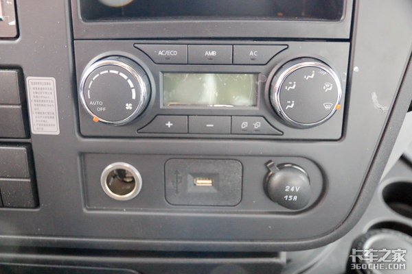 天龙KL配有带屏幕的自动空调,这种空调设定好温度之后,驾驶舱就可以保持在一个恒温的状态,避免驾驶员频繁的调整空调温度,可以使驾驶员有更好的注意力去开车。在自动空调下面,则有一个24V的电源和一个USB充电口,可以随时为手机等设备进行充电,解决了手机电量不足的烦恼。