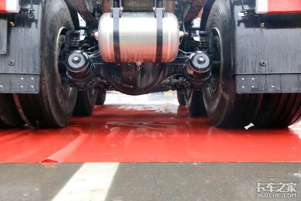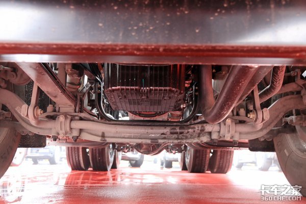 板簧为前2后3的少片簧设计,可以有效降低整车自重。车桥采用东风德纳双440单级桥,速比是3.64,可以适应多种路况,在保证经济性的同时兼具爬坡能力。标配有强制齿轮润滑泵,能够减小轴差以及圆柱齿轮失效,使桥体的使用寿命更长,提高了车辆的周转效率。