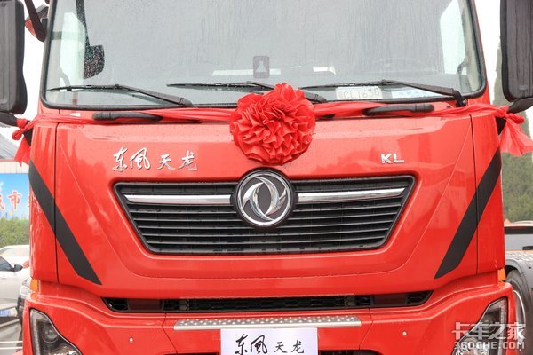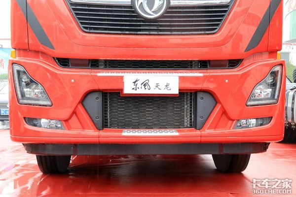 东风天龙KL,使用的是家族式设计语言,从进气格栅处出来的黑色拉花,一直延伸到车身侧面,配合V型的前脸,使整车看上去更加具有棱角感,增加了整车的观赏性。