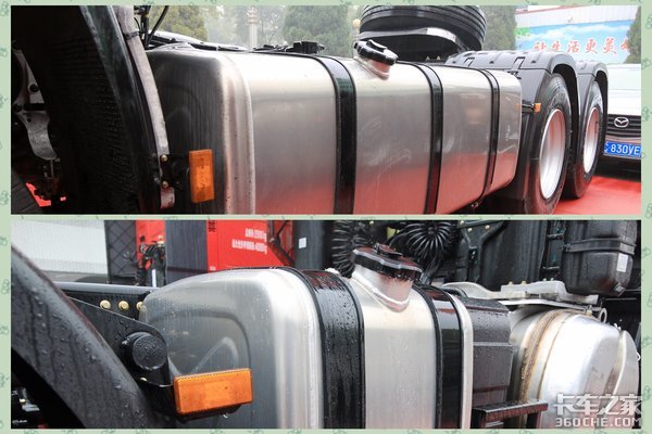 左800L右250L的双油箱,可以使车辆有一个良好的续航能力。在标载情况下,车辆在高速上行驶时,百公里油耗约在30L,加满油车辆的续航里程可以达到3500公里,如果车辆是从山西运城出发,终点是新疆乌鲁木齐,那么理论上只需要加一次油就可以跑完全程,减小了车辆在加油站所耗费的时间,提高了运输的时效性以及车辆的周转效率。