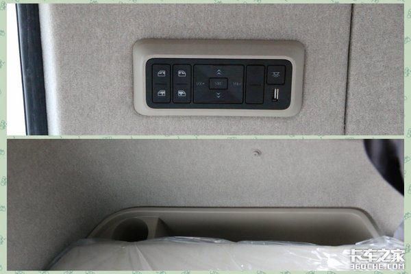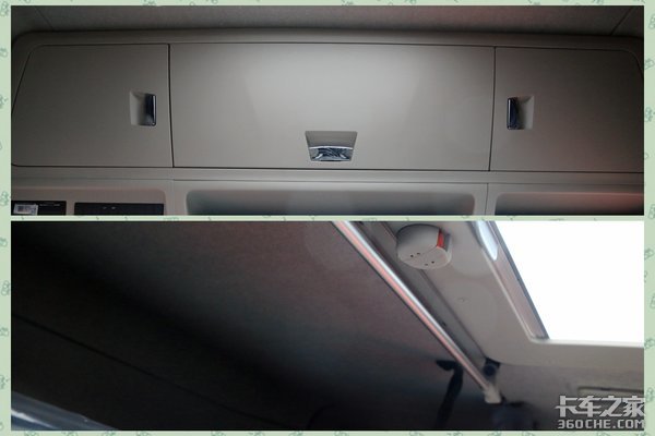 配有一个可移动式的密封烟灰缸,可以避免驾驶室烟灰飞舞,保持驾驶室干净整洁。吸烟时烟味比较大,除了驾驶室两侧的车窗外,顶部也带有天窗,可以加速室内空气流通的速度,对于不吸烟的跟车人员来说,这个配置简直就是雪中送炭。