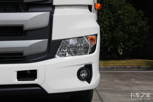 车辆依旧采用了超高顶驾驶室,不仅保证了车辆内部的舒适性,同时有效降低了车辆的视觉中心,让整个前脸造型看上去更加的精明强干。同时前脸并未采用过度复杂的线条设计,两侧几道折线勾勒出导风槽,优化车辆风阻系数的同时,也让前脸更加立体。