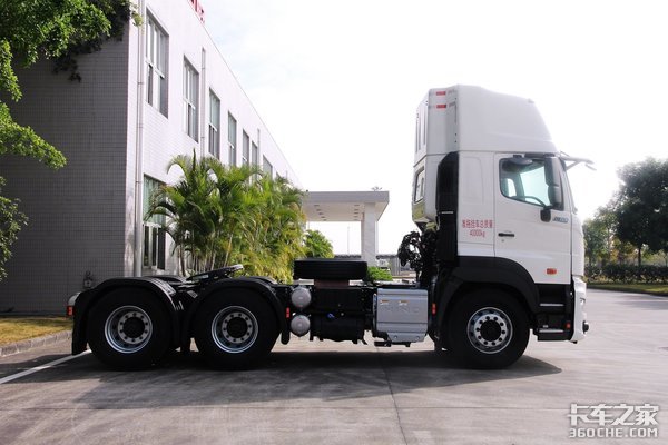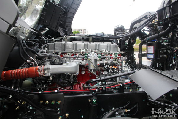 实拍车型搭载一台型号为U11C-TC的上海日野直列六缸发动机,10.52L排量,最大功率450马力,最大扭矩2000N.m,最大扭矩输出转速为1100-1500rpm,满足国六排放标准。这款发动机优势在于较低的转速便能够爆发最大扭矩,保证动力性的同时,油耗表现也值得期待。