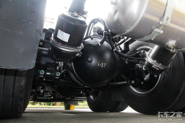 实车搭载速比为3.7的双后桥,最高允许载荷达18000kg。