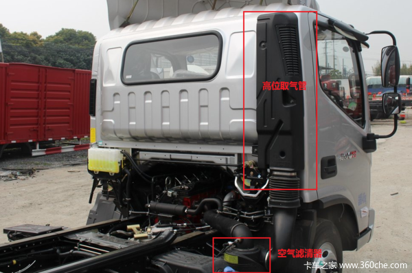 进气系统主要由高位取气管—①、空气滤清器—②、中冷器—③、输气管路—④⑤⑥等组成,高位取气管的作用是避免吸入近地面含尘量大的空气;空气滤清器的作用是滤去空气中的灰尘杂物,输出洁净空气;中冷器的作用则是降低增压后的空气温度,提高空气密度,还能降低燃油消耗。