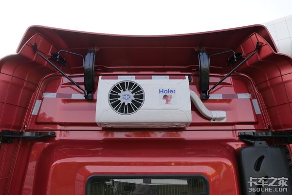 刚走到车身后侧一点,就发现了位于驾驶室后方的海尔驻车空调。有了驻车空调,不管是在12月气温都有25度的海南,还是在夏季潮湿多雨的云贵川,卡友停车休息都能大大提升舒适性。而且原厂的驻车空调,还不担心背上违法改装的嫌疑。