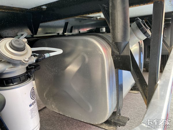 除了黄金动力链的搭配,车辆底底盘在轻量化方面的表现也十分不错,实拍车型搭载了120L铝合金油箱,120L的油箱容积为目前轻卡产品主流的油箱容积,足以满足运营需要。