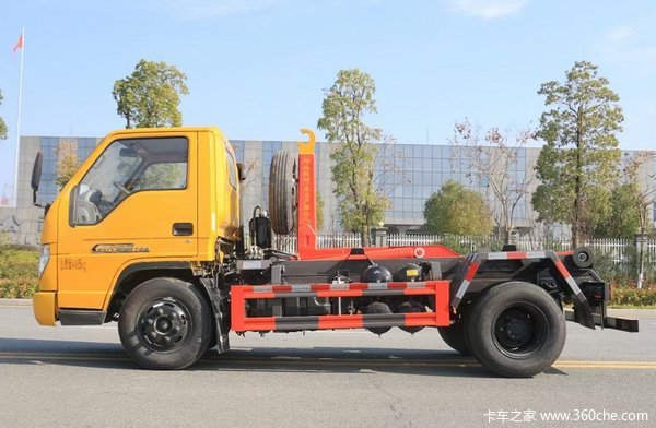 勾臂式垃圾车除了箱体能完全脱离车身,便于装载外,当勾臂车将车厢勾起后就成了一个完整的自卸车,带有自卸车的全部功能。非常方便自卸倾倒建筑垃圾之类较重的物料。