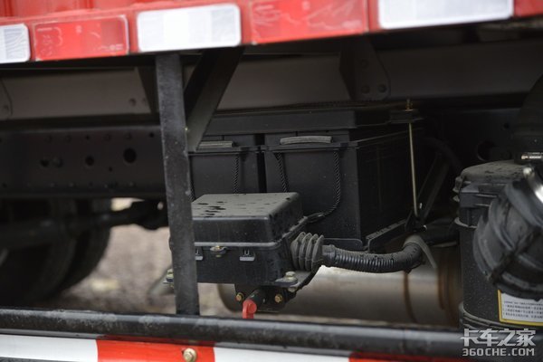 车架右侧单独布置一个免维护蓄电池,从图上可以看到,蓄电池周围采用外壳紧固密封,不容被其他人打开,可以有效防止偷电瓶的情况发生。蓄电池旁边还预留了很大的改装空间,可以轻松加装淋水器、工具箱等。