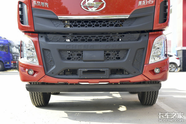 这款乘龙H5采用高顶双卧驾驶室,看起来更加高大,车辆有着丰富的线条设计,搭配两侧凶狠的导流槽,为整车营造了不错的运动感。前脸部分采用大量黑色面板装饰,中间则是银色饰条和品牌标示,能起到很好的过度作用,丰富视觉效果。
