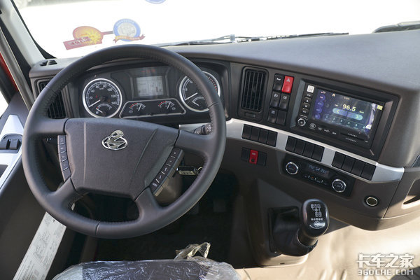 这款乘龙H5主副驾之间的地板还是存在一定的凸起,不过别担心,这款车的驾驶室在9米6车型中,空间算是比较宽裕的,配合高顶驾驶室,整个车厢内的活动空间可以说是较游刃有余,能够带来一个相对舒适的驾乘环境。