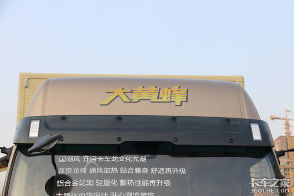 车顶安装有黑色遮阳罩,可在行车时大大减轻阳光直射对驾驶员视线的干扰。遮阳罩两侧安装有示廓灯,可在夜晚行车时起到很好的提醒作用,保障行车安全。