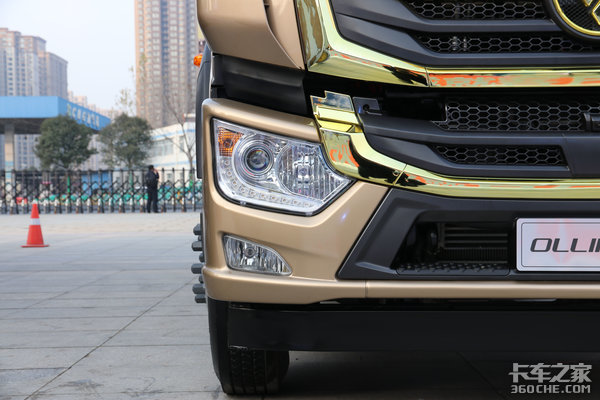 大灯部分设计有LED日间行车灯、转向灯和远近光灯,雾灯单独布置在下方。近光灯带透镜,能有效增强聚光性,改善照明效果。保险杠上方设计有经防滑处理的蹬车踏板,配合挡风玻璃前的两个把手,为驾驶员清洗前脸及挡风玻璃等部位带来方便。