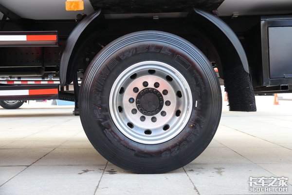 整车匹配规格为11R22.5的佳安轮胎,轮辋采用铝合金材质,并采用多孔设计,实现轻量化的同时更能改善散热效果。