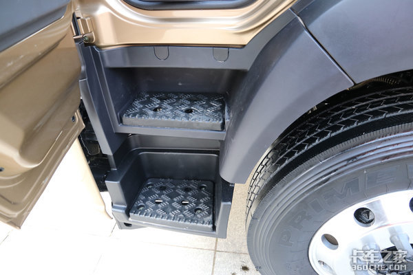这款大黄蜂的驾驶室配有两级蹬车踏板,踏板采用镂空设计并经过防滑处理,大大减少了驾驶员上车时将泥土带入车内或脚底打滑的情况。上层踏板相比下层踏板向内收缩,使得驾驶员上车时更加稳当省力。