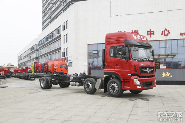 动力方面,这款车搭载的是东康D6.7NS6B320发动机,最大输出320马力,在1200-1500rpm时能爆发出最大扭矩1200牛米,符合国六排放标准。这款发动机广泛搭载于东风载货车型上,保有量高,维修养护都很省事方便。而且320马力对于一台底盘自重7.2吨的9米6小三桥载货来说,已经完全够用,能够有不错的动力储备。