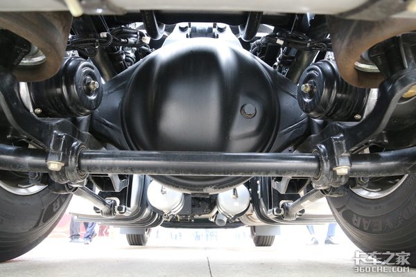 后桥采用498升级冲焊桥,速比为2.688,整车的总速比也为2.688,大马力小速比,不仅跑得快,而且还非常省油。同时后桥换油周期也长达50万公里。