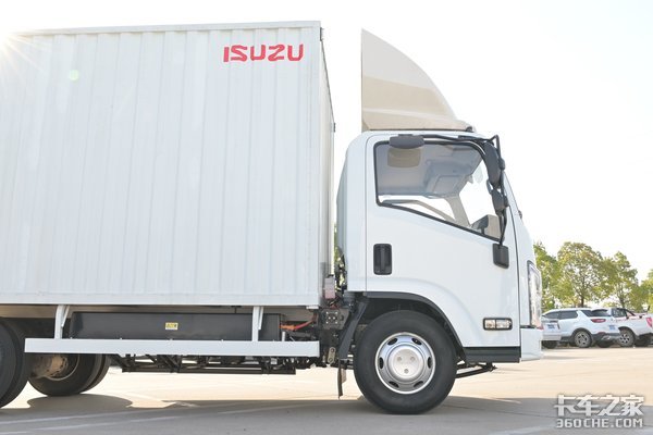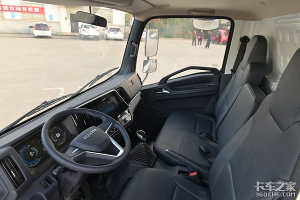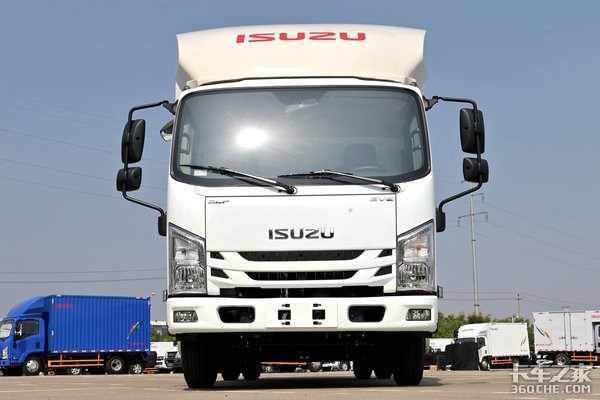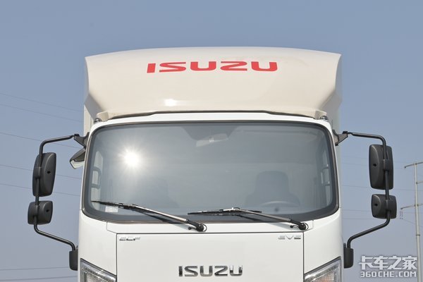 整车外观采用的是非常经典的五十铃风格,偏方正、硬朗风,厢货和仓栅上装标配大尺寸流线型导流罩,几乎可以和后方货箱持平,在行驶中可以降低风阻。驾驶室顶部两侧带有示廓灯,在夜晚行驶时,可以更好的提醒其它道路参与者,提升行车安全性。