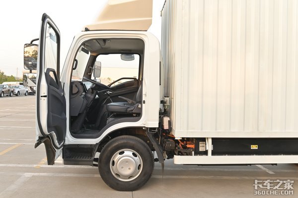 从驾驶室侧方可以看出来整体驾驶室往后凸出了一部分,在不影响货厢尺寸的情况下,进一步扩充了驾驶室内部空间,尤其是给座椅靠背的调节留出更大的空间。另外,无论是前脸还是侧方的接缝处,处理的都非常到位,完全继承了五十铃的优秀装配工艺。