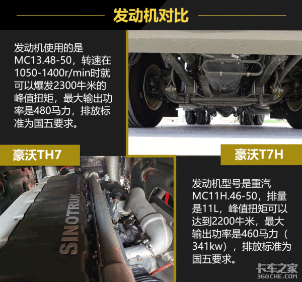 实拍的豪沃T7H和豪沃TH7,动力匹配上都使用的是MAN技术加持的发动机,整车动力性还是比较有保障的。豪沃T7H的马力可选范围,相较于豪沃TH7来说比较广泛,这可能和TH7刚推出市场有关。卡车之家行情报告显示,豪沃TH7目前暂时只有460马力、490马力、540马力这三种选择,后续厂家可能会逐渐推出更多的马力车型供卡友选择。